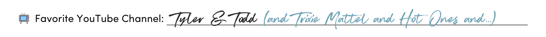 When he’s not creating, Tyler loves reality tv (The Real Housewives and Drag Race are his faves), cooking, and road trips with his husband Eric.